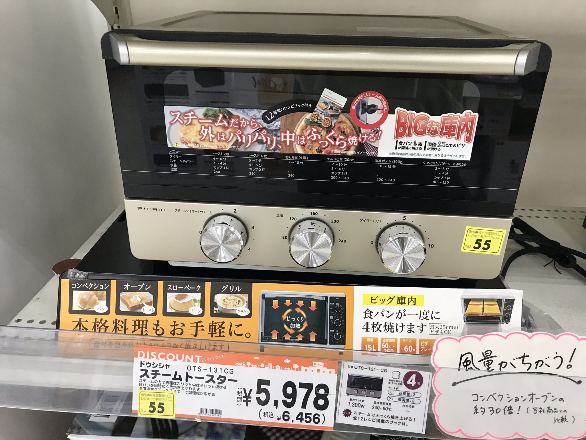 - 風量が違う(コンベクションオーブンの30倍!!)