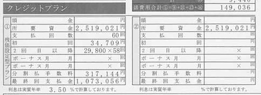 実は、先日ディーラーに貰った見積書にはクレジットプランとして残クレの計算が記されていたんですね。