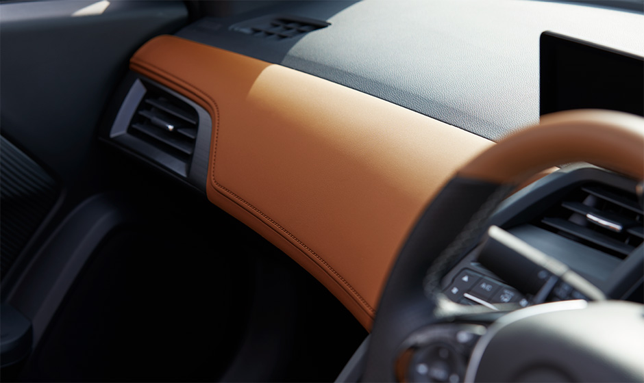 ブラウンを大胆に配し、新たな個性を印象付ける専用のスポーツレザーシート