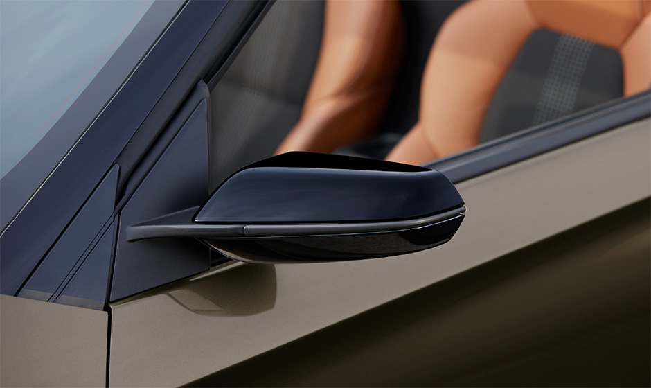 洗練されたスタイリングに一段と深みを与えるブラックドアミラー