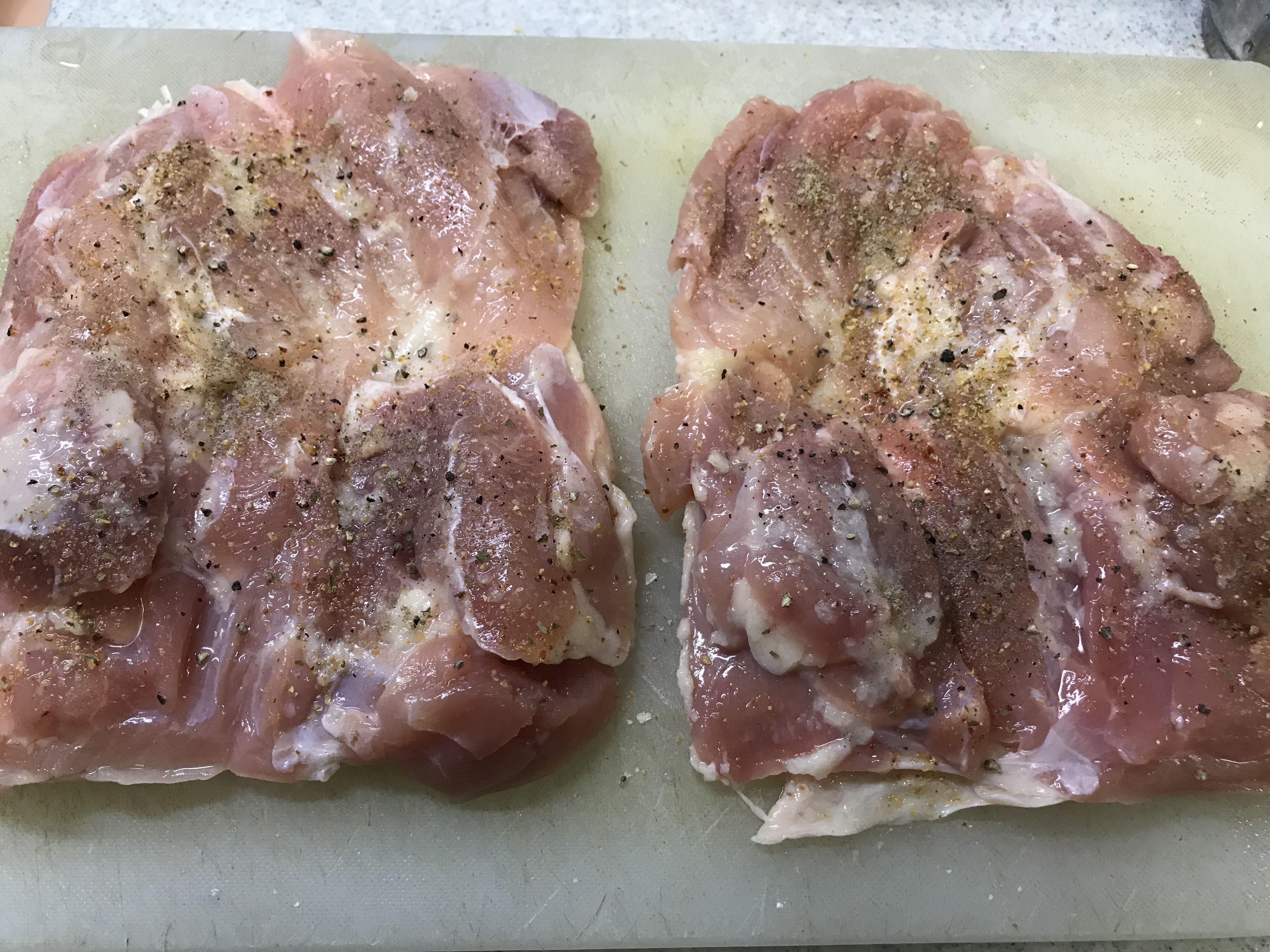 まず下味をつけるために、ハーブ塩・胡椒などで揉み込みます。