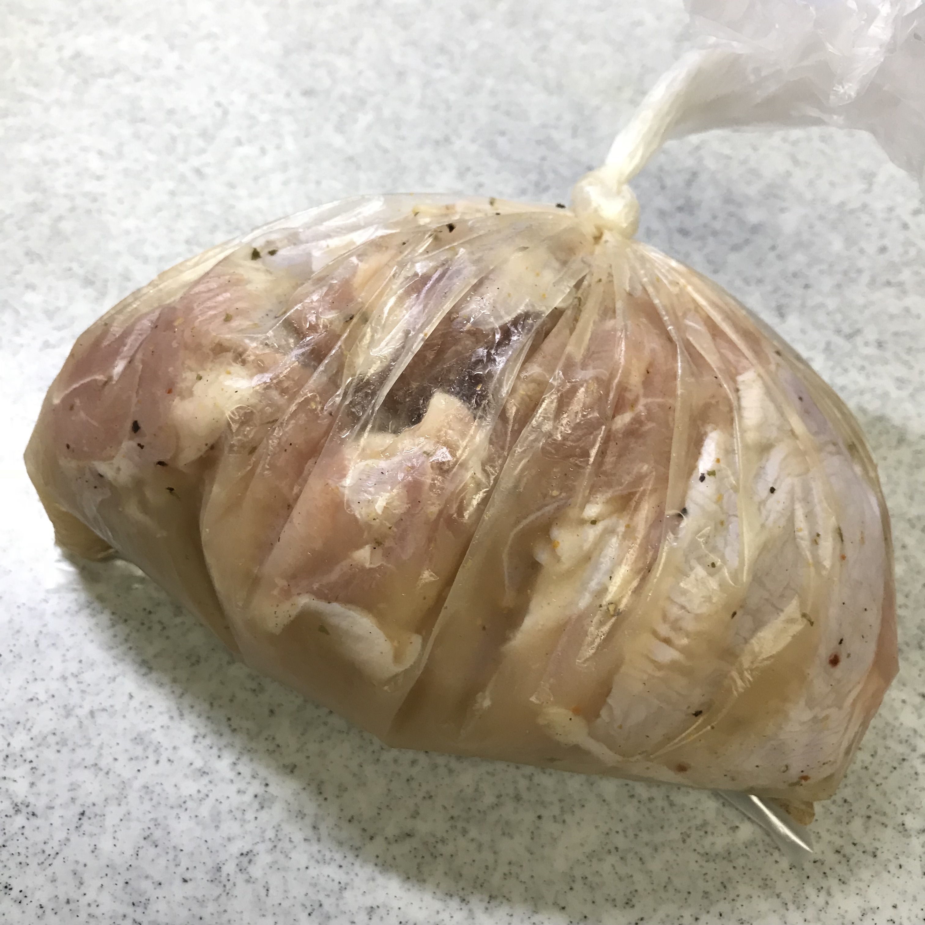 今回はハーブ塩・胡椒・料理酒・白ワイン・ビネガー・ニンニクで作りました。