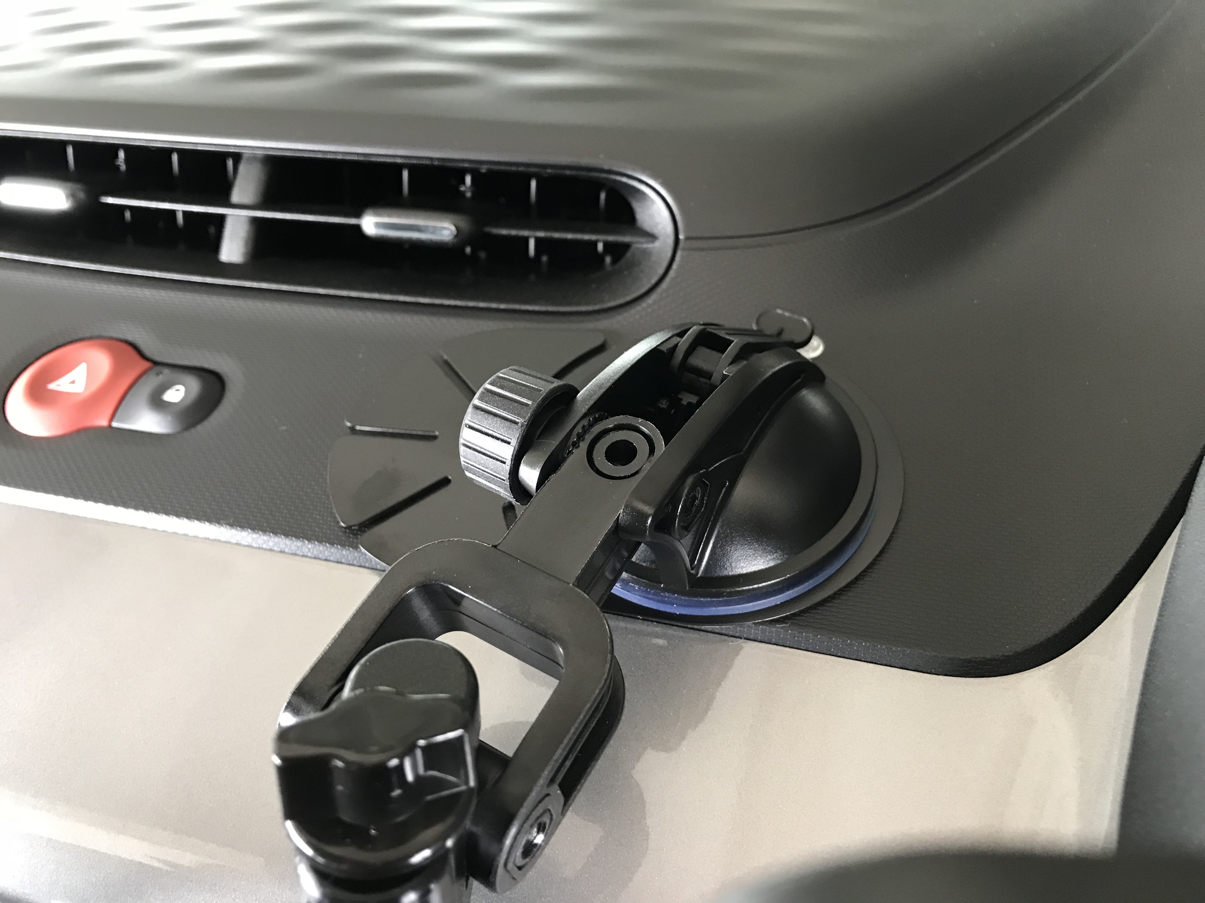 本当は両面テープなどを貼り付けたくないのですが、仕方なく底部の金属プレートをダッシュボードに接着しました。
